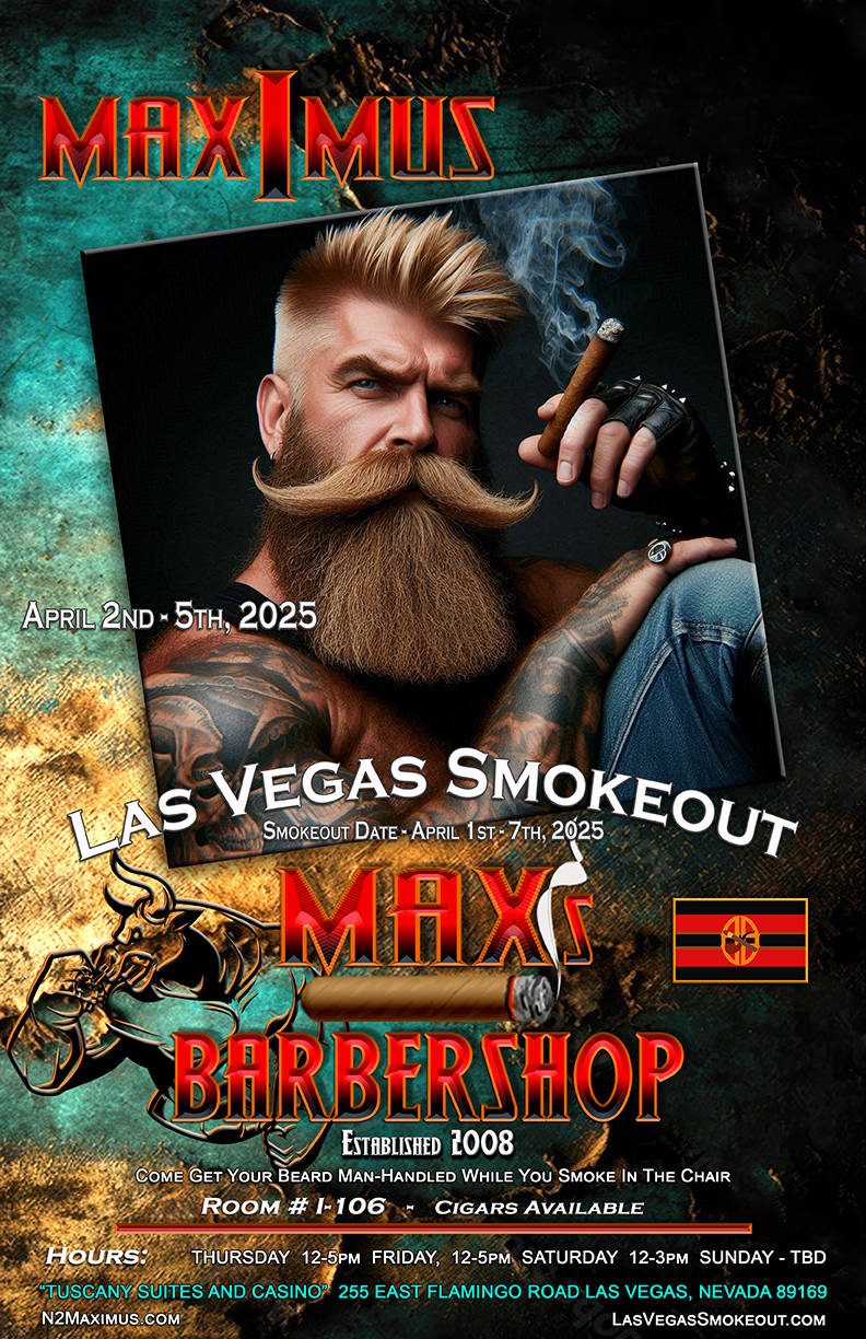 If you’re looking for the tobacco-fumed company of like-minded, red-blooded men who share your cigar and pipe fetishes big time, you’ve come to right place. Take some time to explore our website to learn more about MAXIMUS, eyeball our gallery of poster studs, keep up-to-date with our calendar of events, and find out about the venues that host our evening and weekend-long gatherings.